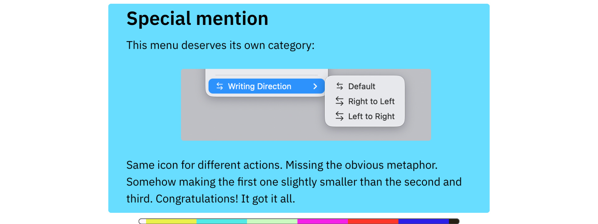Me, I haven’t ‘upgraded’ to Tahoe yet, so I can’t say how these missteps play out. But Nikita Prokopov aka Niki has thoughts. Many thoughts. Pointed thoughts. Incredulous, frustrated, annoyed, disbelieving thoughts.