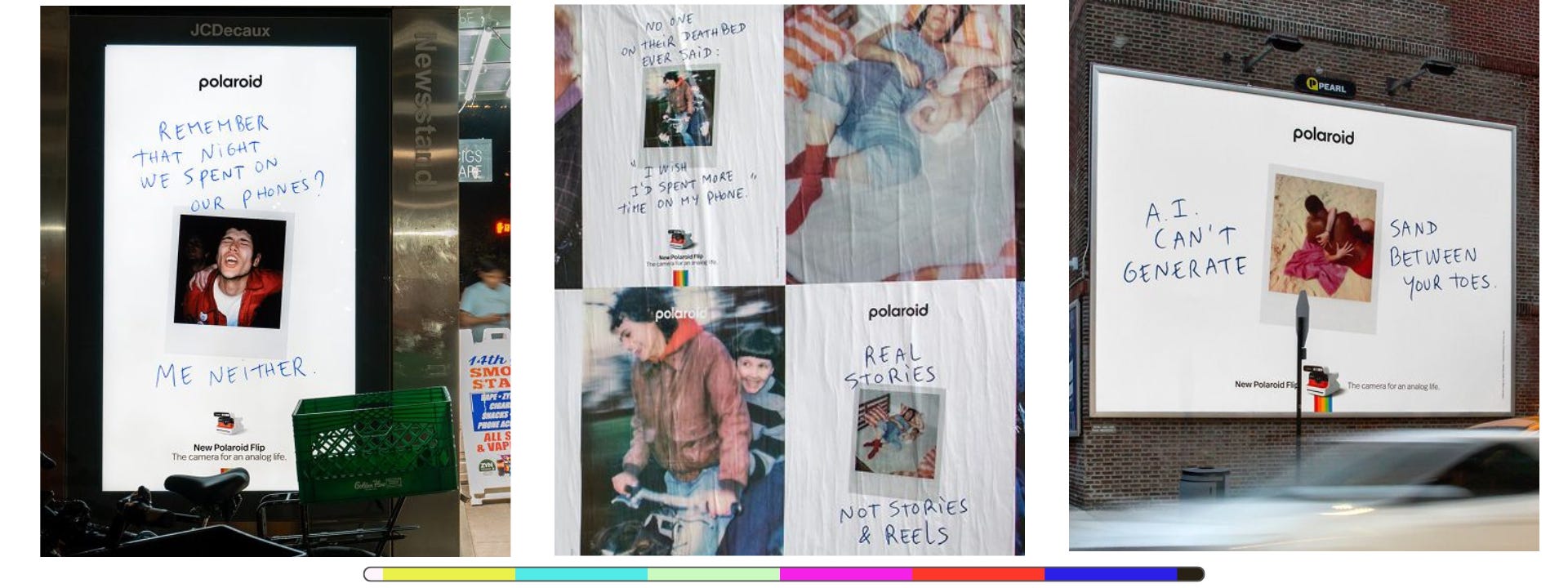 Charming campaign from Polaroid came by last week. Nicely done, leaning into the ‘real’ positioning they have had for some time now, while neatly prodding AI and phones as well. Sample these OOH examples.