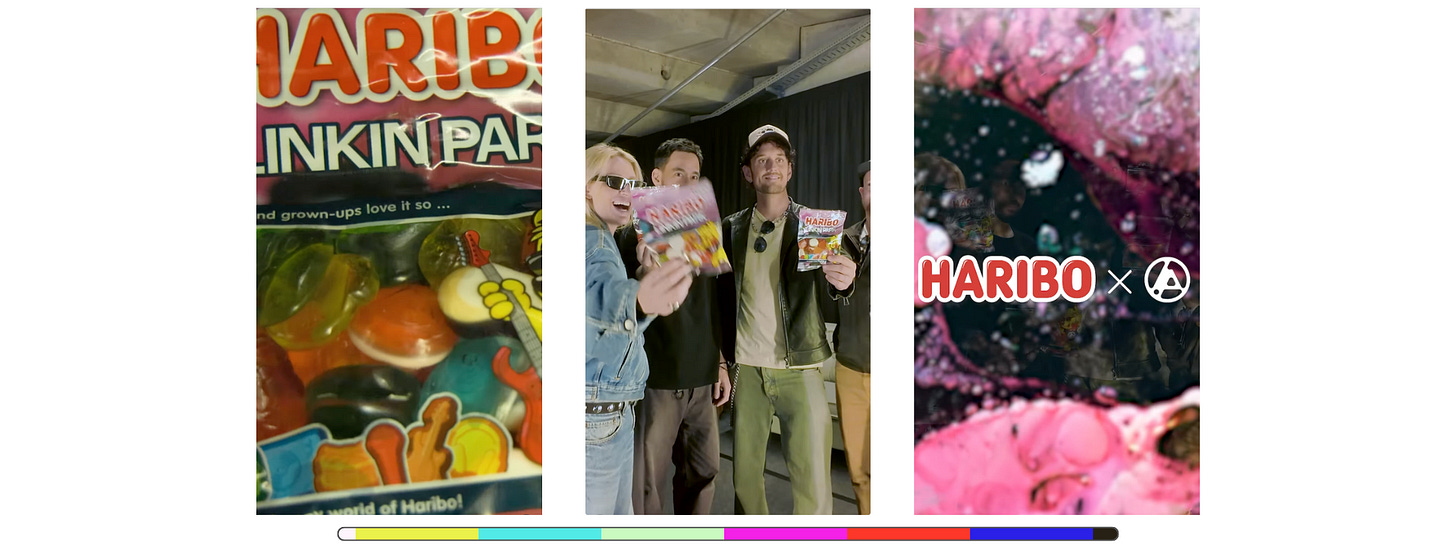 Apparently, its not just kids- the Linkin Park gang loves them too. Leading into the summer concert season, Haribo made special edition gummies with the band logo and personalised candy pieces for each band member- think guitars, microphones and more. Yummy?